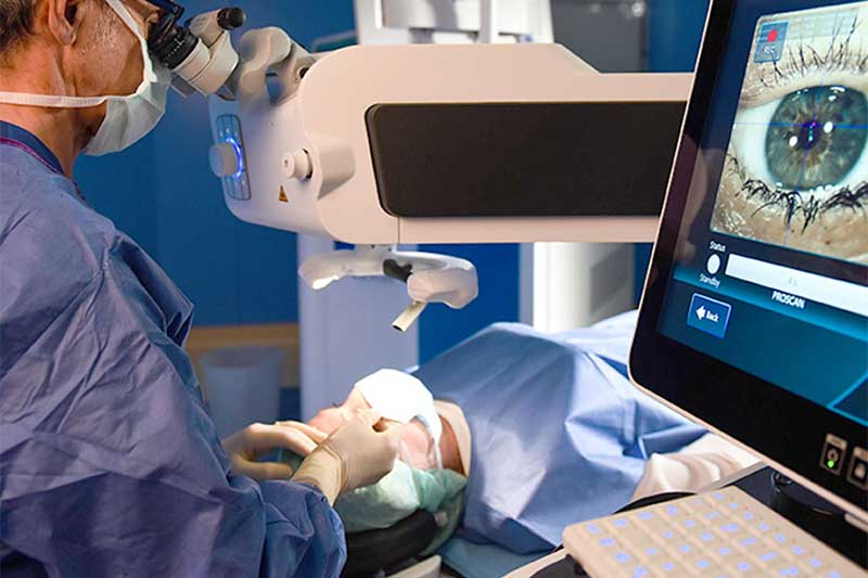 Al paziente verrà richiesto di sdraiarsi sul lettino, sotto allo strumento laser, verranno instillate alcune gocce di collirio anestetico, per poi iniziare l’intervento di chirurgia refrattiva.